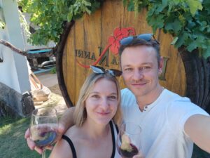 Je näher wir Cafayate kamen, desto mehr Weinreben tauchten links und rechts der Straße auf. Endlose Weinfelder unter der warmen Sonne – und Carina hatte endlich das Wetter, das sie sich seit Wochen gewünscht hatte. Keine Daunenjacke, kein Wind, kein Hochgebirgsfrösteln… einfach Sonne pur. Ich glaube, sie hat innerlich einen kleinen Freudentanz gemacht.