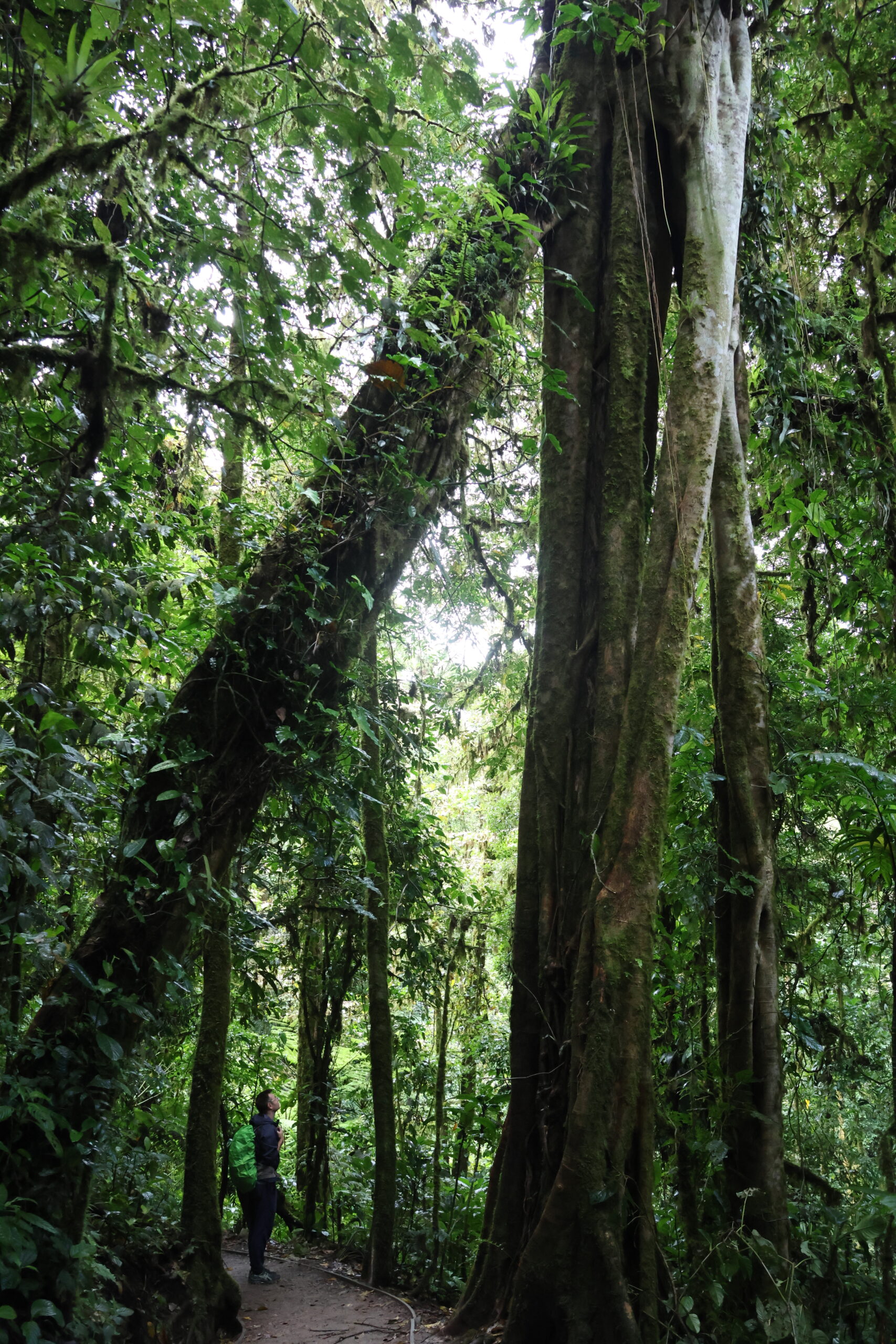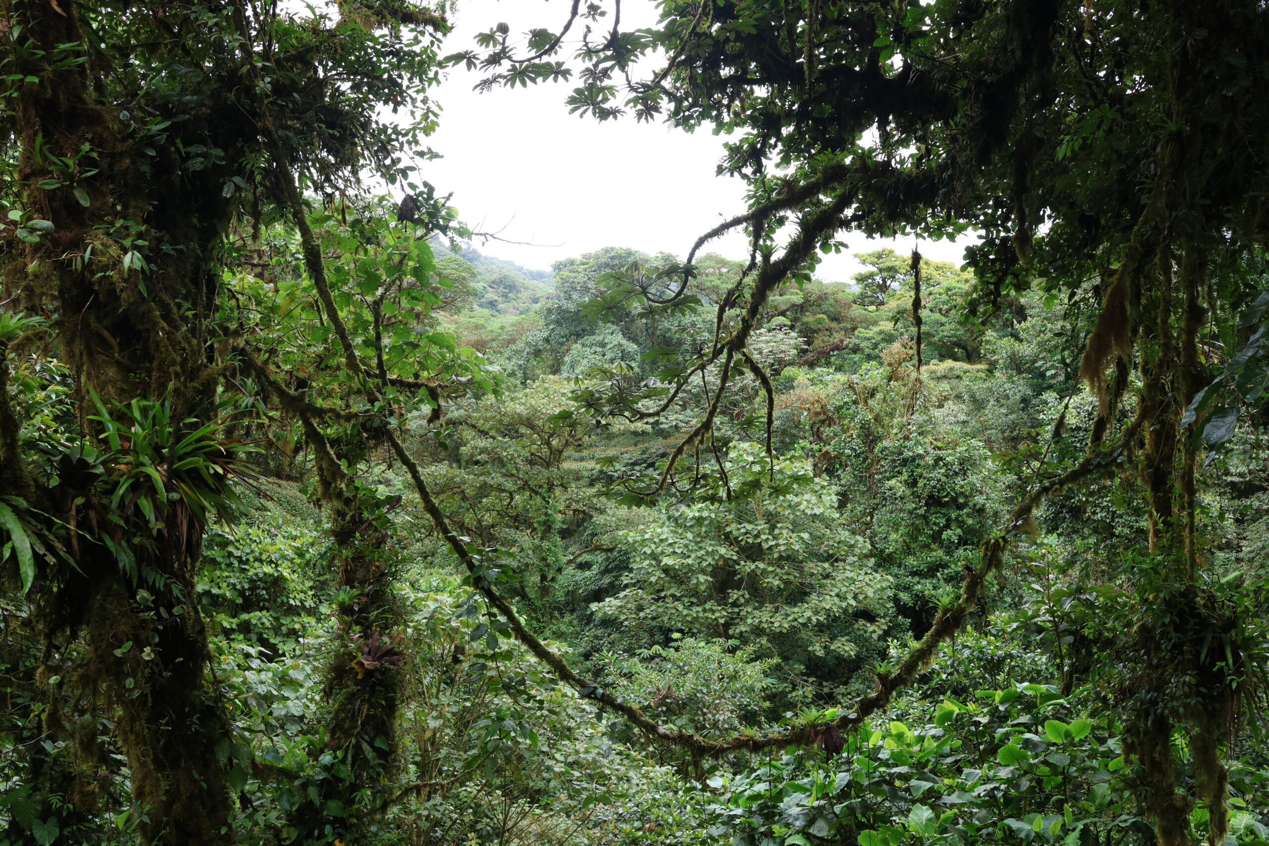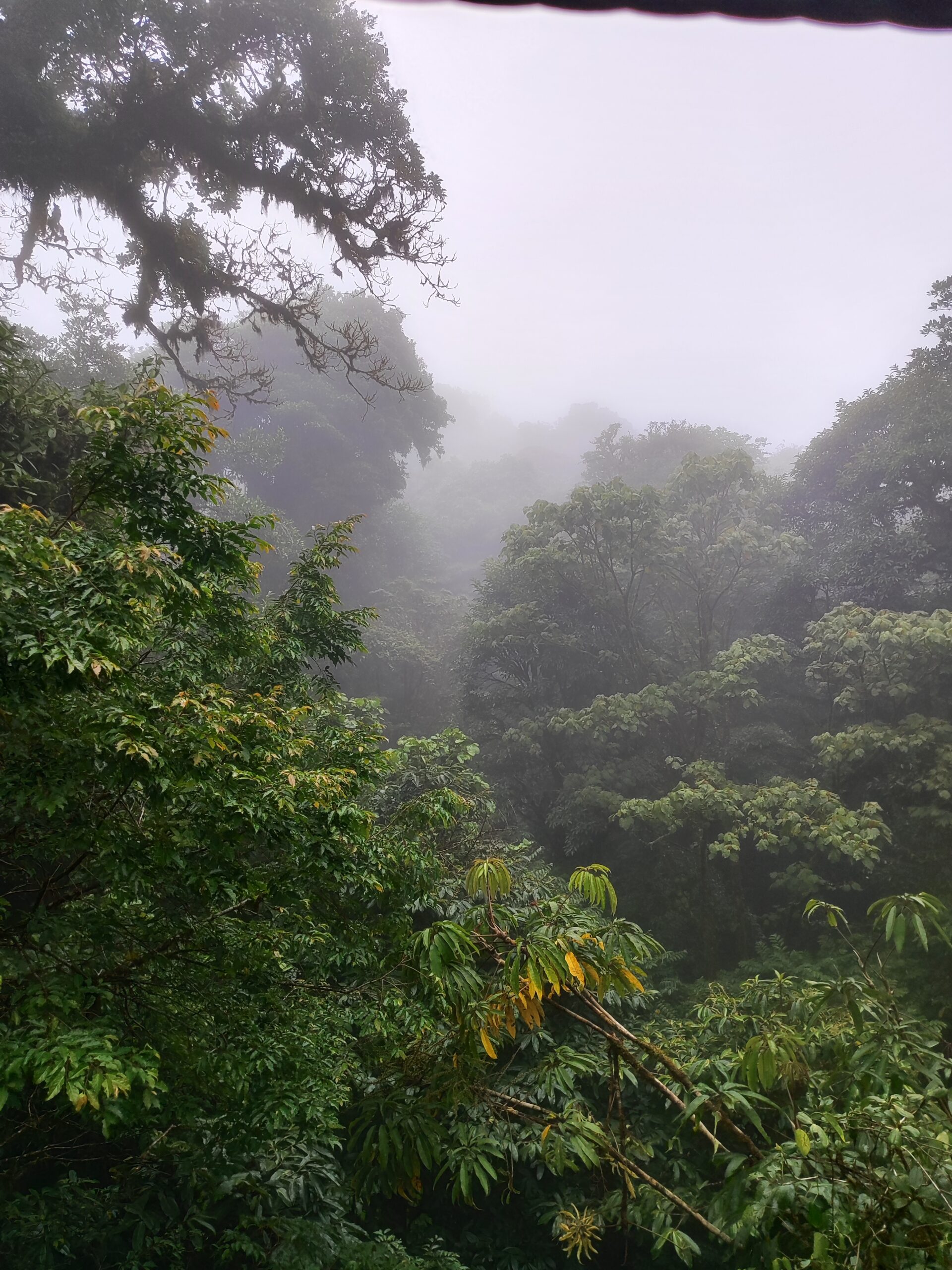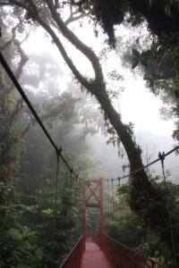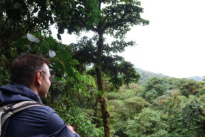 Am nächsten Tag besuchten wir das Biologische Reservat des Nebelwaldes Monteverde. Für den Eintritt zahlt man eine Gebühr und kann sich dann auf den verschiedenen Wanderwegen frei bewegen. Natürlich habe ich die ganze Zeit nach einem Faultier Ausschau gehalten, aber leider keins entdeckt – dafür aber viele Vögel, Schmetterlinge und unzählige Pflanzenarten. Der Nebelwald wirkte wie ein Ort voller Geheimnisse. Ein mystischer Wald, der von dichten Wolken umhüllt wird. Hier herrscht ein feucht-kühles Klima, das eine enorme Artenvielfalt hervorbringt. Kolibris schwirren zwischen den Blüten, Brüllaffen rufen in der Ferne, und überall wachsen Moose, Farne und Bromelien auf den Bäumen. Die ständige Feuchtigkeit sorgt dafür, dass man sich wie in einer grünen Fabelwelt fühlt. Die Bilder geben zwar einen Eindruck, aber live war es noch viel beeindruckender. Während der Wanderung konnten wir den Begriff des „Waldbadens“ nachvollziehen. Umgeben von der Natur hörte man nur das Rascheln der Bäume, das tropfende Wasser und das Singen der Vögel. Wir haben die Zeit im Nebelwald sehr genossen!