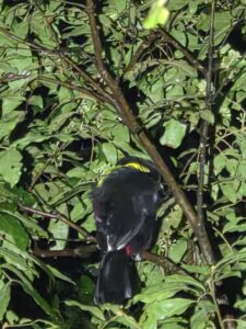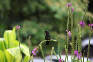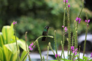 Wir machten erst eine kleine Pause und setzten uns auf eine Bank, um Kolibris zu beobachten. Diese winzigen Vögel waren unglaublich schnell und schwirrten mit einem leisen Surren von Blüte zu Blüte, um Nektar zu trinken. Ihre schillernden Federn blitzten in der Sonne, mal grün, mal blau – je nachdem, wie das Licht fiel. Danach schlenderten wir noch etwa zwei Stunden durch den Wald und über die beeindruckenden Hängebrücken. Diese schwebten hoch über den Baumkronen und boten spektakuläre Ausblicke auf das dichte Grün und den darunterliegenden Wald. Bei jedem Schritt schwankte die Brücke leicht, was das Ganze noch aufregender machte. Von hier oben konnte man nicht nur den Wald aus einer ganz neuen Perspektive sehen, sondern auch Vögel auf Augenhöhe beobachten, die sonst hoch oben in den Baumkronen versteckt sind.