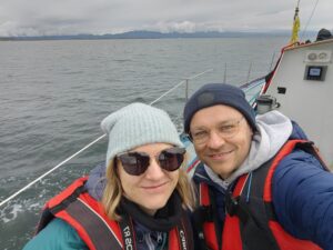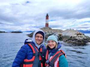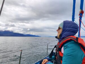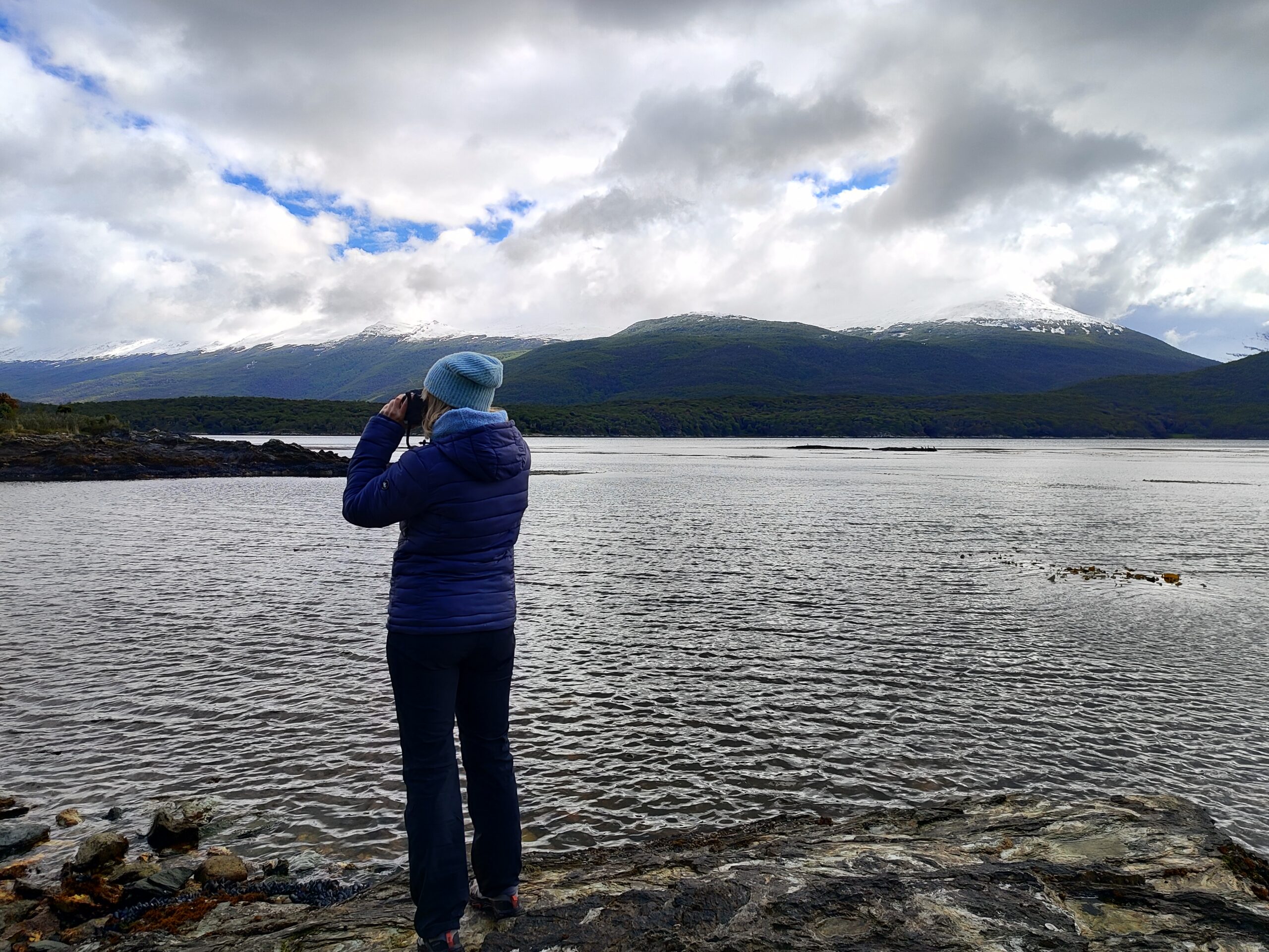 Für unseren vierten Tag hatten wir uns etwas Besonderes ausgesucht. Eine Bootsfahrt auf dem Beaglekanal, allerdings nicht mit einem großen Tourboot, sondern mit einem kleinen Segelboot. Wir waren nur acht Personen plus Kapitän und sein Smutje. Sehr familiär, sehr entspannt. Wir fuhren zu mehreren kleinen Inseln und konnten Seelöwen, Kormorane, andere Seevögel und sogar einen Seeelefanten beobachten. Unser Anbieter hatte die Sondergenehmigung, eine der Inseln zu betreten, sodass wir dort eine kleine Wanderung machen konnten. Dabei erfuhren wir viel über die Tierwelt, die Pflanzen und auch über die Geschichte der Region, die Ureinwohner und die Entdeckung des Kanals. Leider gab es an diesem Tag kaum Wind, sodass echtes Segeln ausfiel. Aber ehrlich gesagt war das völlig egal. Wir lagen an Deck, ließen uns die Sonne ins Gesicht scheinen und bestaunten die Berge, die hier direkt aus dem Wasser aufragen.