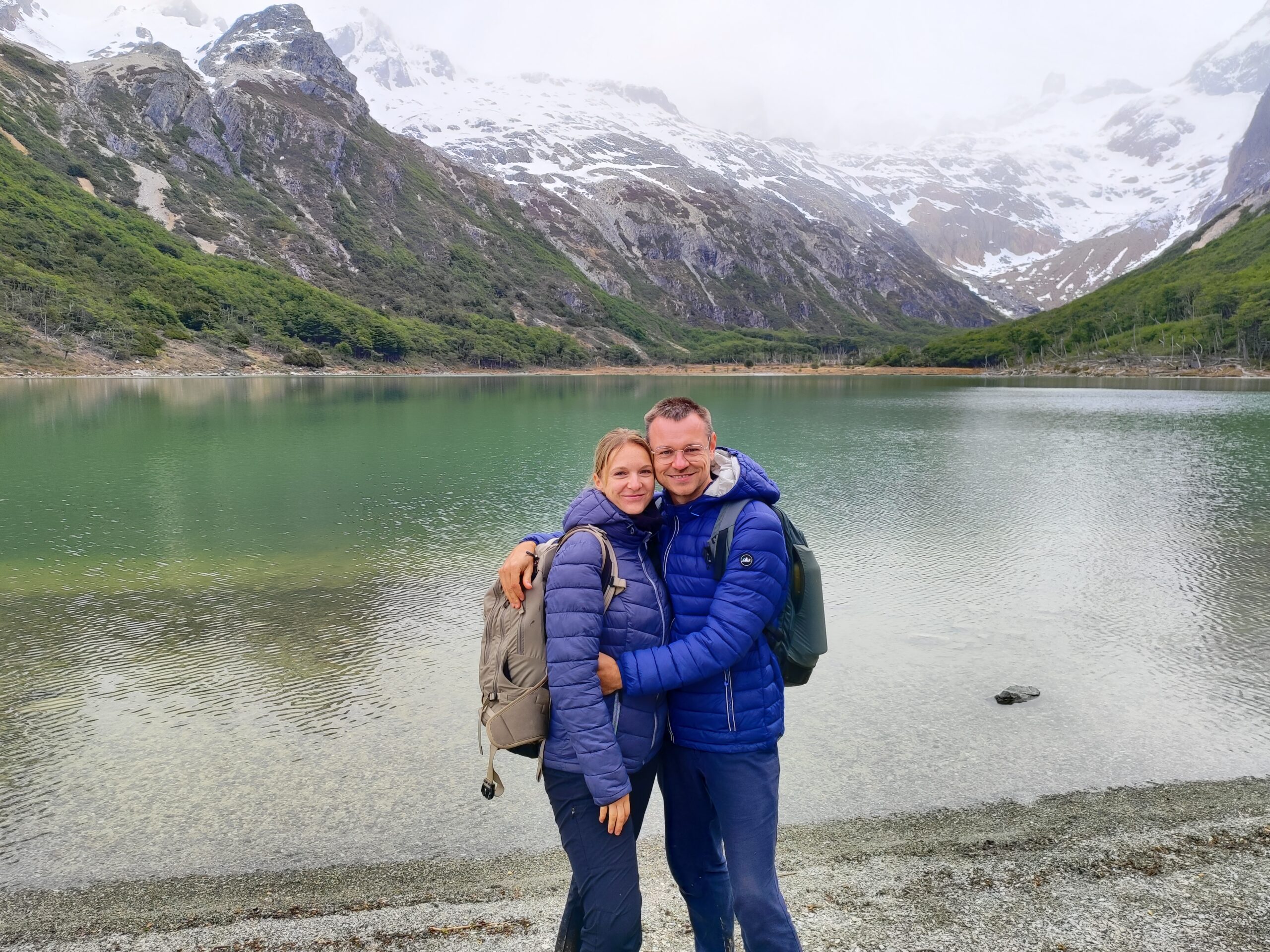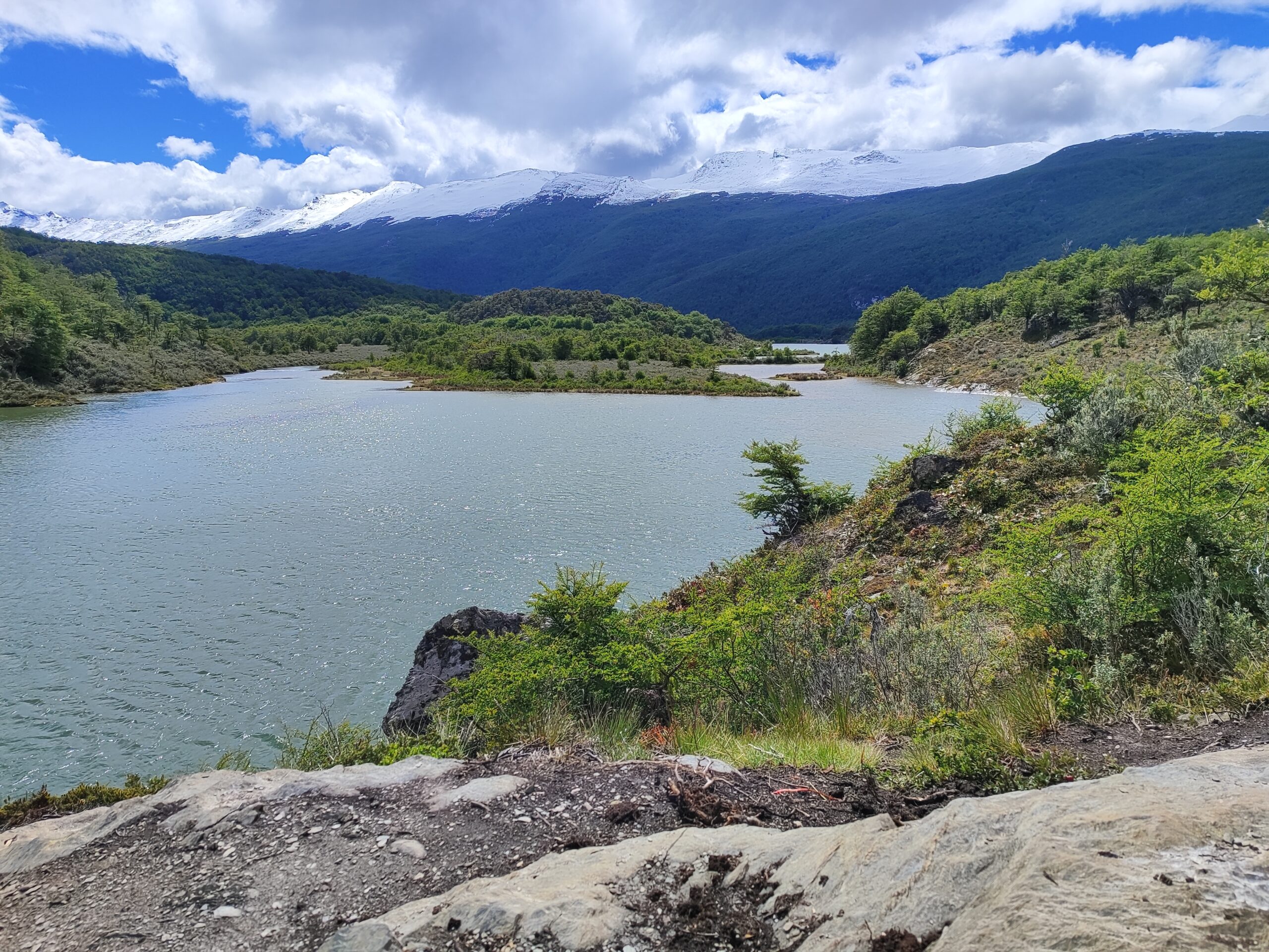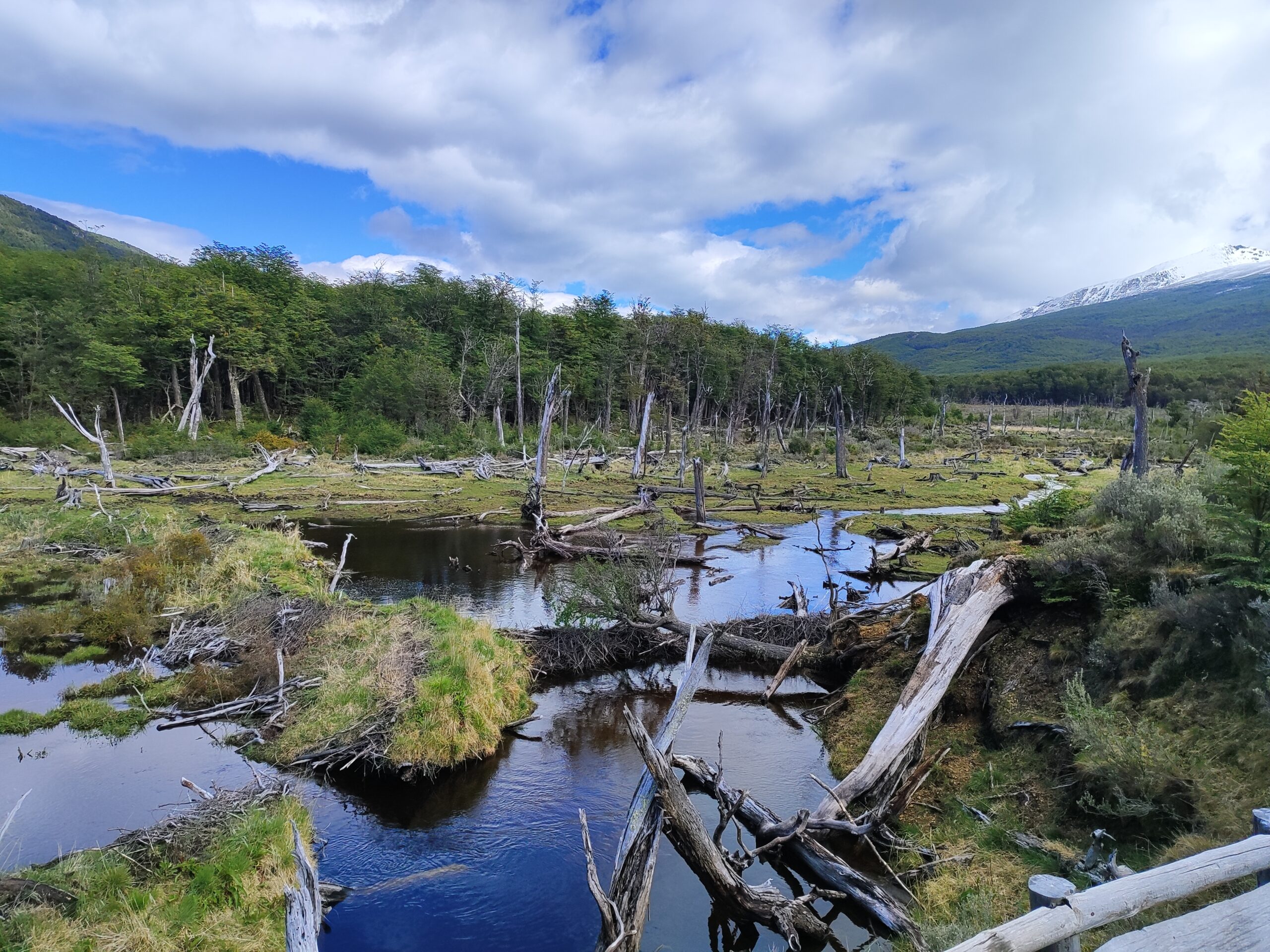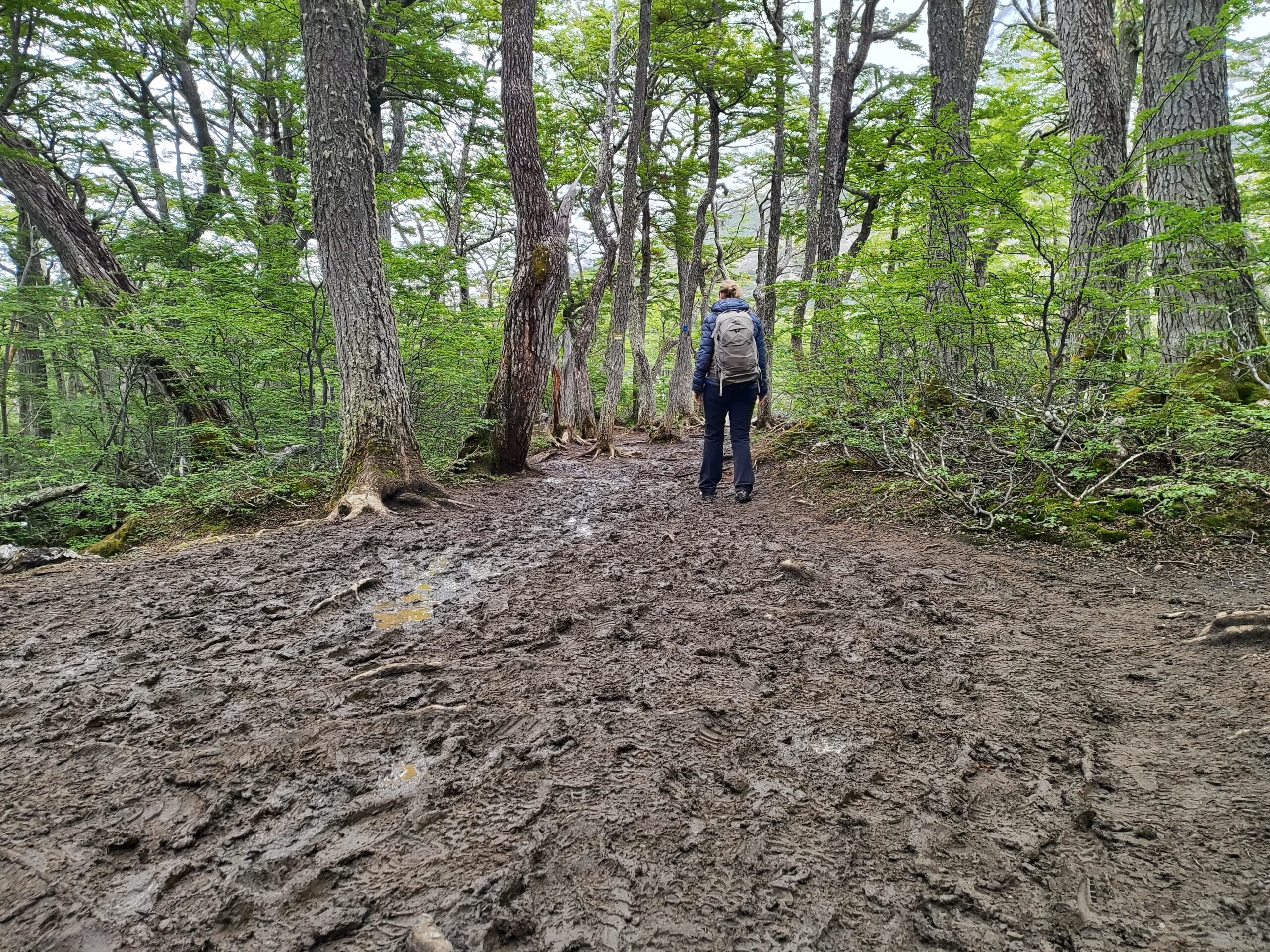 Am nächsten Morgen wurden wir früh von der Sonne geweckt. Es war kurz nach fünf Uhr hell und abends geht sie hier im patagonischen Sommer erst gegen 21.30 Uhr unter. Carina hatte für diesen Tag eine Wanderung im Nationalpark Tierra del Fuego geplant. Mit dem Bus ging es hinein in den Park. Leider war der bekannte Weg direkt am Wasser gesperrt, weil er durch den vielen Regen stark beschädigt war. Es gab aber eine Alternative. Auch diese war stellenweise extrem matschig und ohne wasserdichte Wanderschuhe hätten wir ziemlich alt ausgesehen. Dafür wurden wir mit wunderschöner Natur belohnt. Wälder, Seen, Berge und kaum andere Wanderer. Genau so mögen wir das.