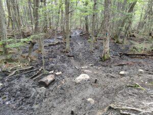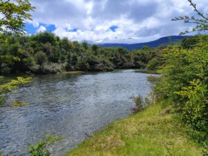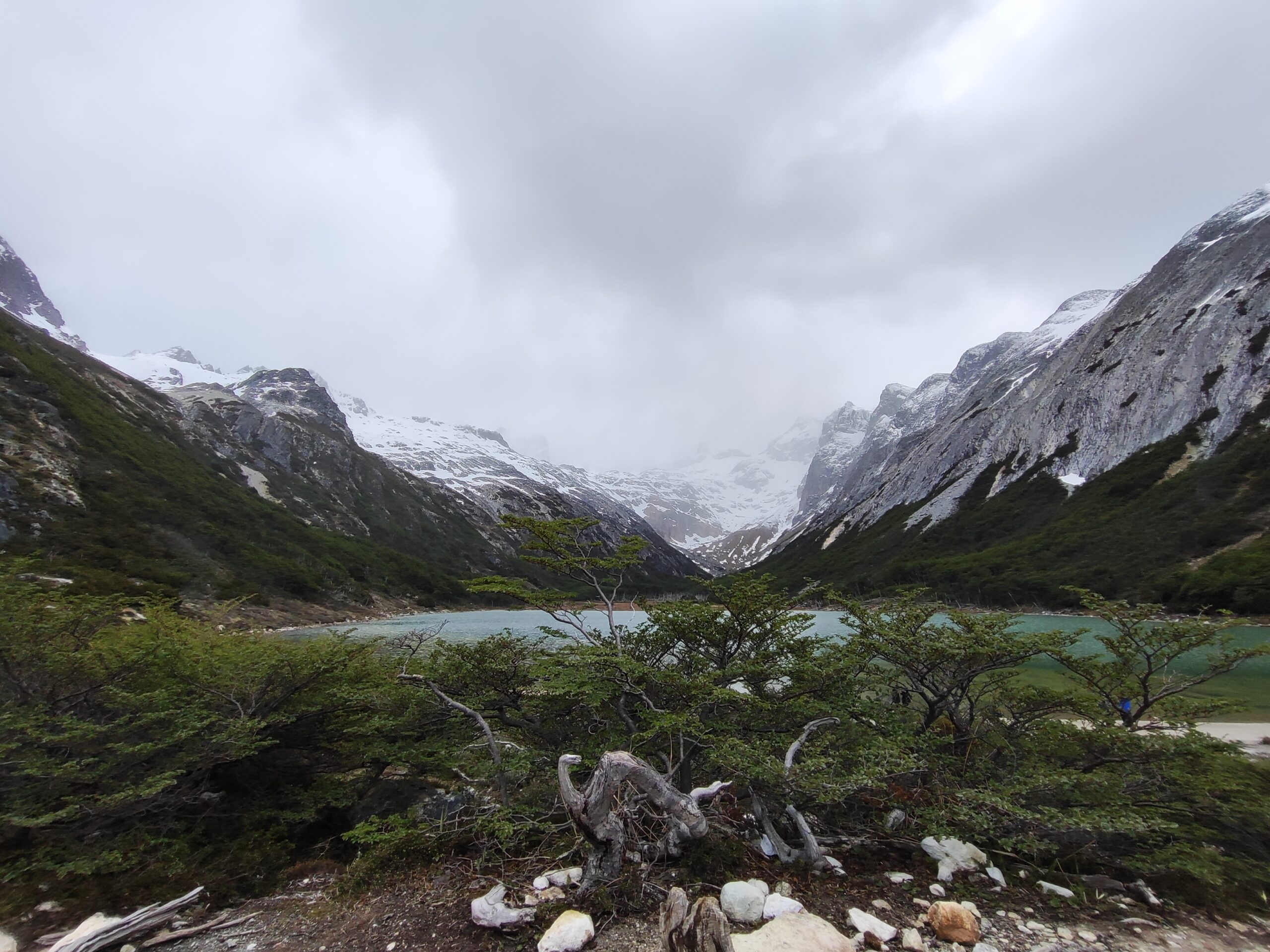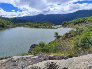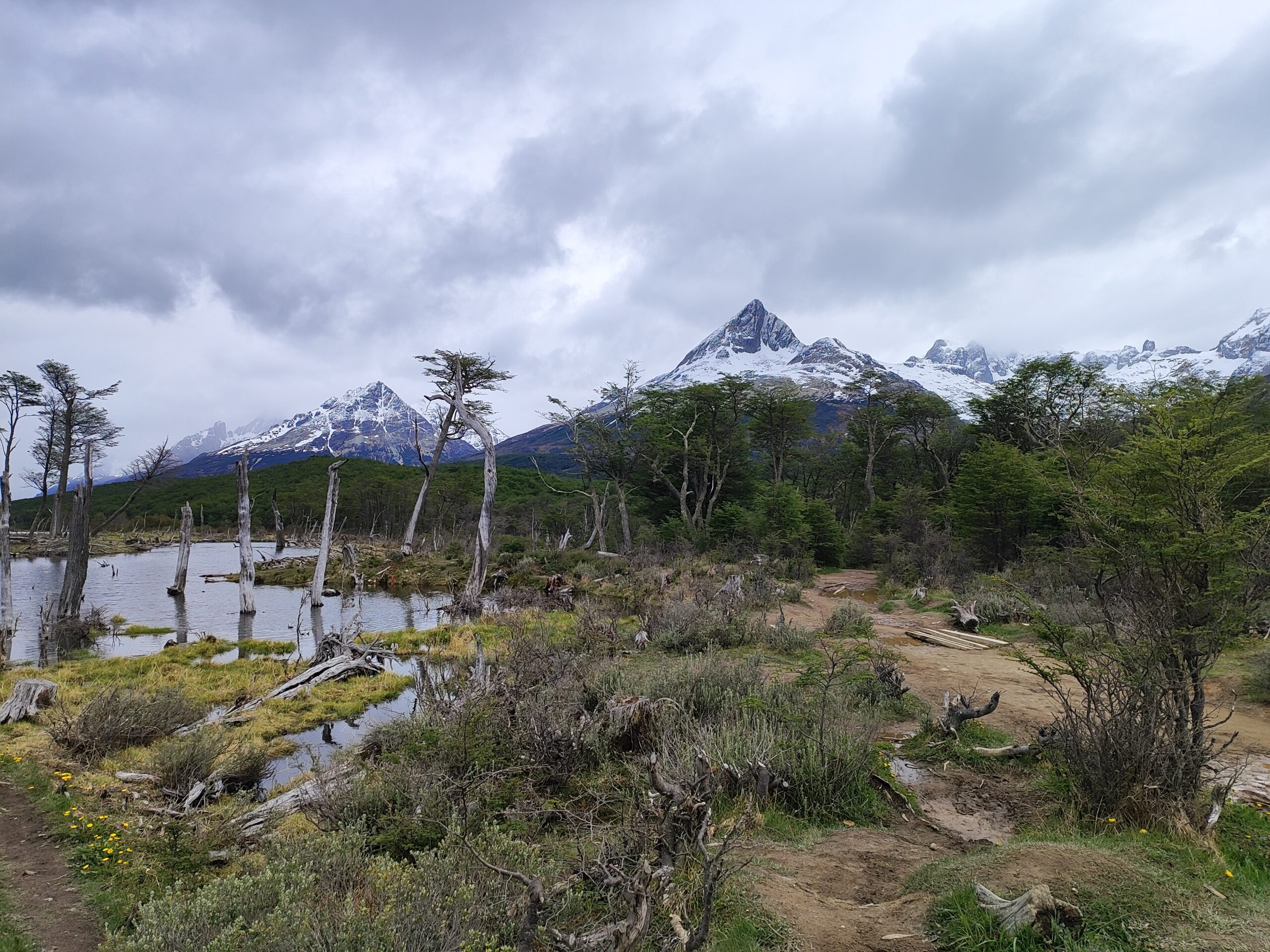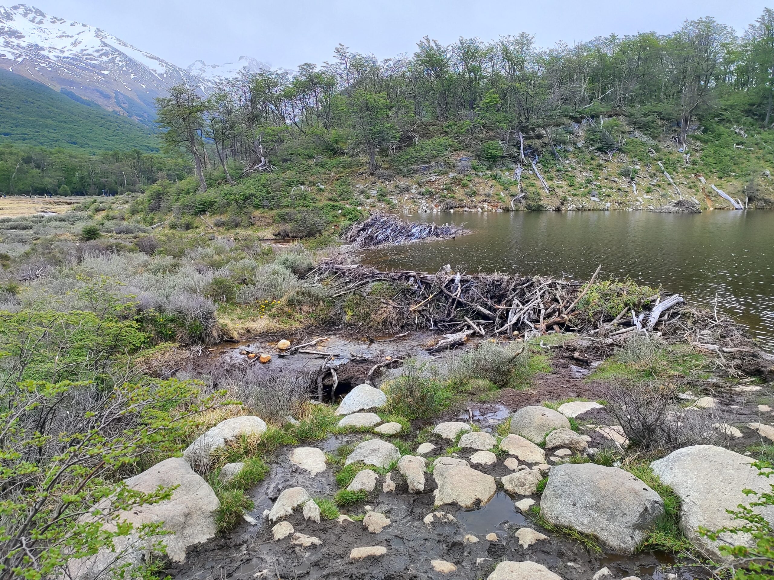 Am nächsten Morgen wurden wir früh von der Sonne geweckt. Es war kurz nach fünf Uhr hell und abends geht sie hier im patagonischen Sommer erst gegen 21.30 Uhr unter. Carina hatte für diesen Tag eine Wanderung im Nationalpark Tierra del Fuego geplant. Mit dem Bus ging es hinein in den Park. Leider war der bekannte Weg direkt am Wasser gesperrt, weil er durch den vielen Regen stark beschädigt war. Es gab aber eine Alternative. Auch diese war stellenweise extrem matschig und ohne wasserdichte Wanderschuhe hätten wir ziemlich alt ausgesehen. Dafür wurden wir mit wunderschöner Natur belohnt. Wälder, Seen, Berge und kaum andere Wanderer. Genau so mögen wir das.