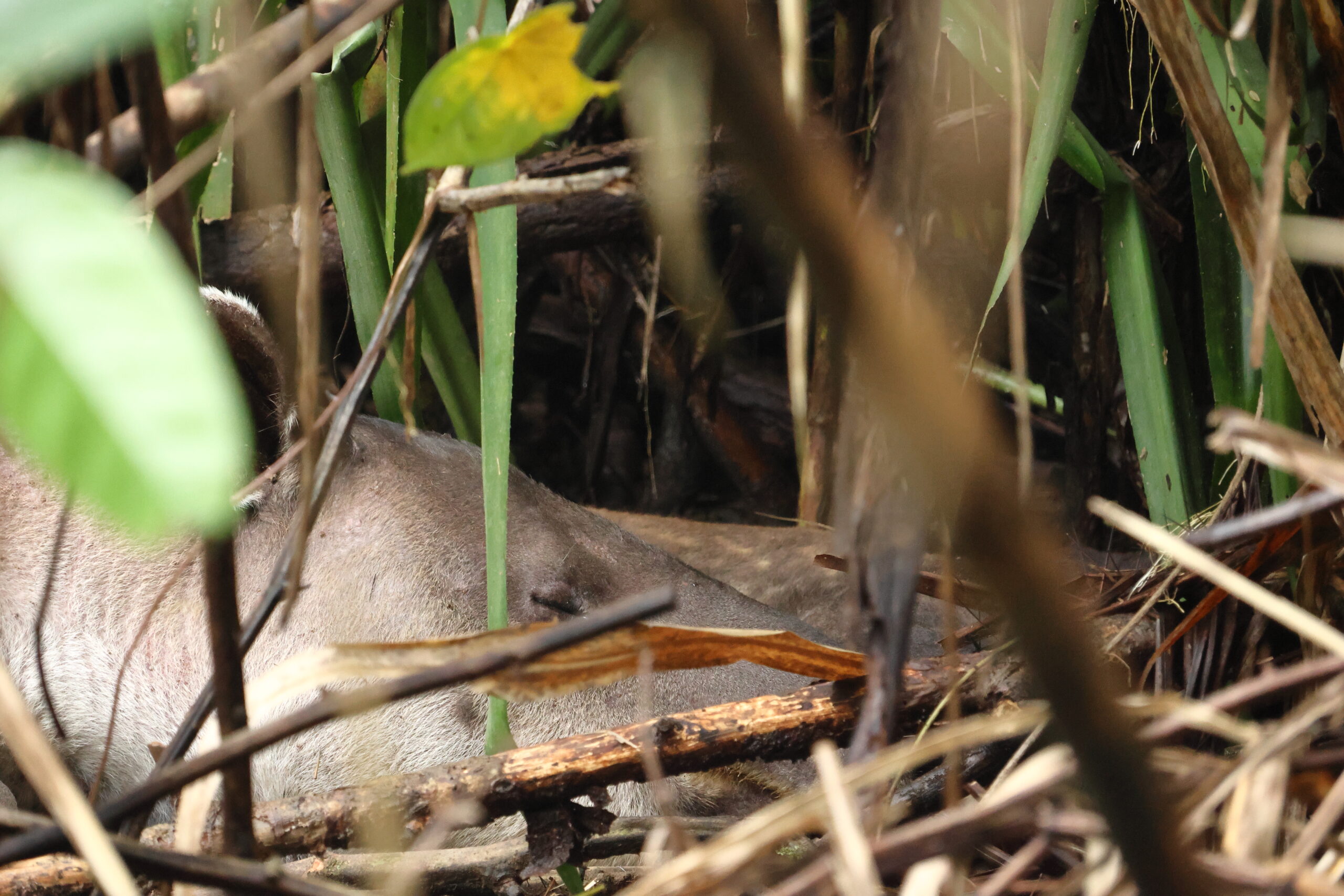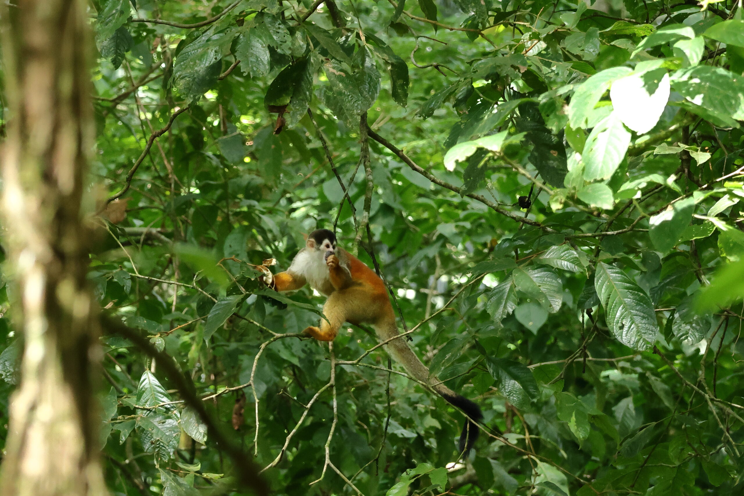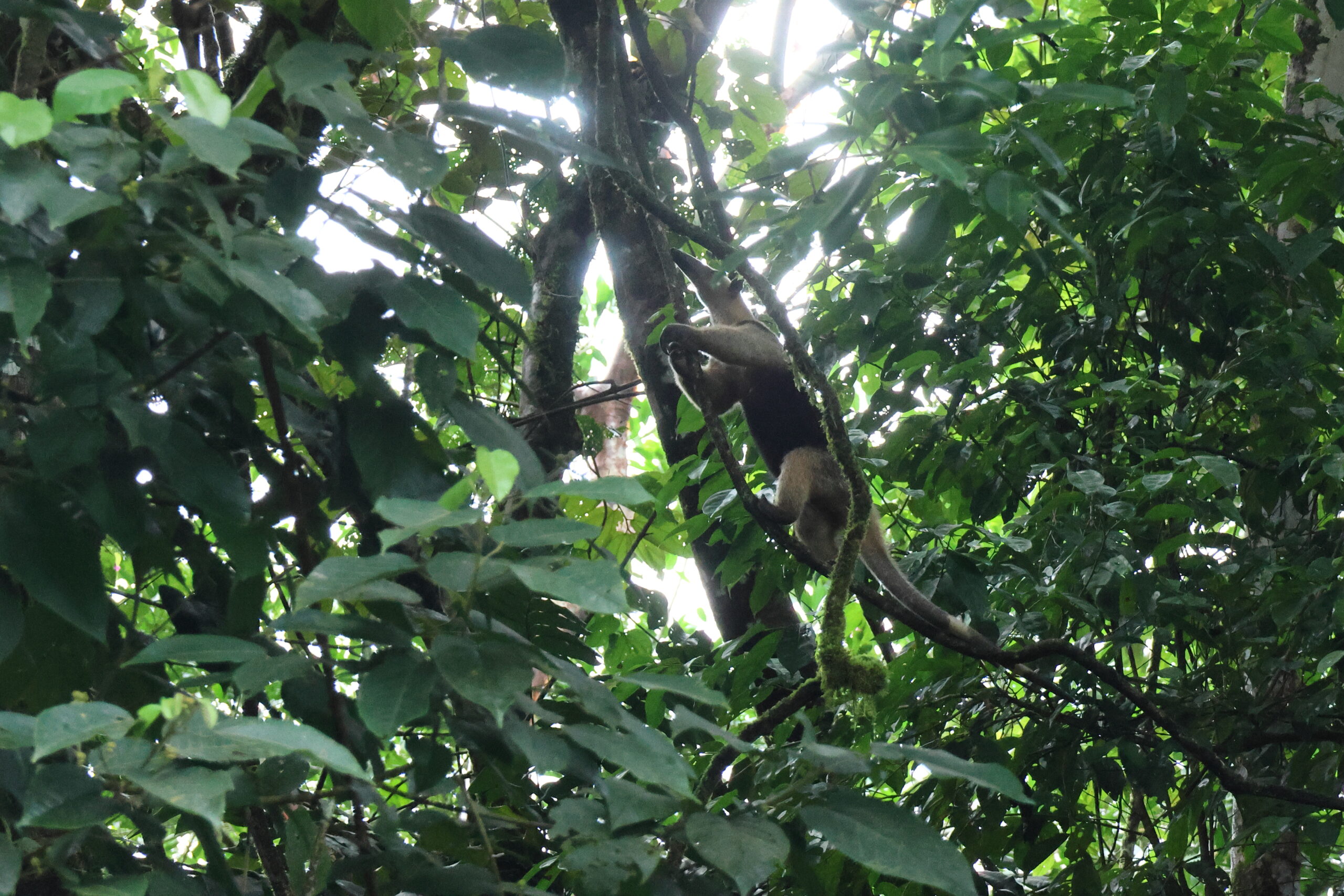 Schon auf unseren ersten Wanderungen fühlte es sich an, als würden wir durch ein lebendiges Naturlexikon laufen. Jeder Schritt brachte neue Geräusche, Bewegungen und Entdeckungen. Nasenbären durchstöberten den Waldboden nach Futter, während hoch oben Klammeraffen mit einer fast schon artistischen Leichtigkeit von Ast zu Ast schwangen. Totenkopfäffchen huschten blitzschnell durch die Zweige und warfen uns neugierige Blicke zu, Brüllaffen sorgten im Hintergrund für die passende Urwald-Atmosphäre mit ihrem tiefen, grollenden Ruf. Wir entdeckten Ameisenbären, die seelenruhig nach Termiten suchten, sahen ein Krokodil im Fluss liegen, Agutis und Pekaris beim Grasen, und als Krönung: einen Tapir mit Baby – ein Anblick, der uns einfach sprachlos machte. Über uns segelte ein farbenprächtiger Tukan, während ein Curassow gemütlich am Wegrand entlang spazierte. Dazu kamen unzählige andere Vögel und Echsen, die diesen Ort zu einem wahren Paradies machen.