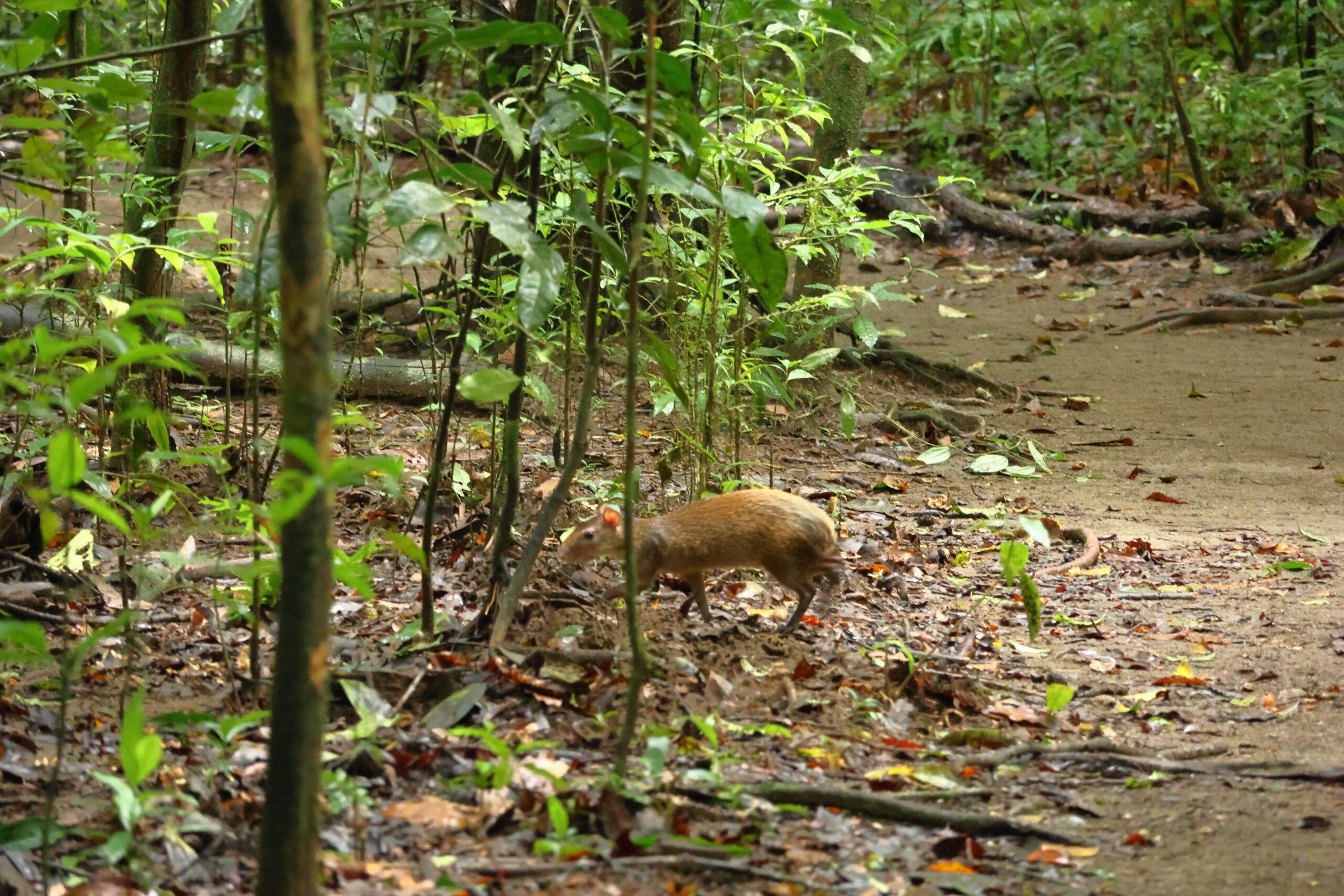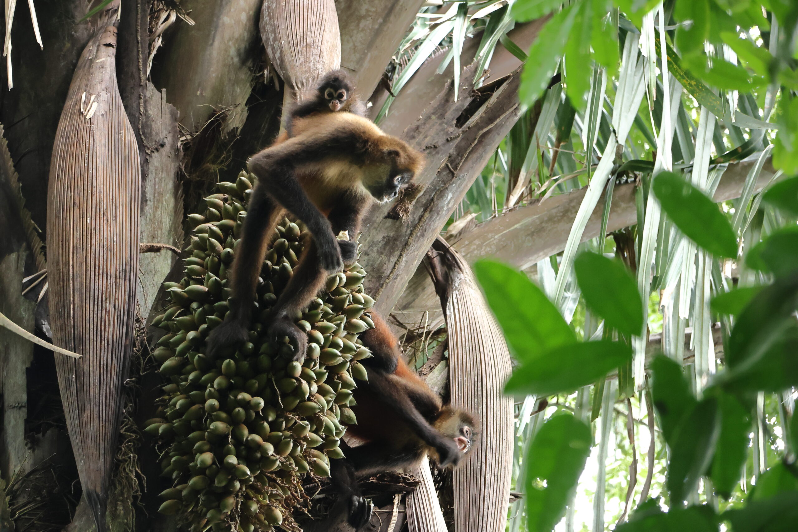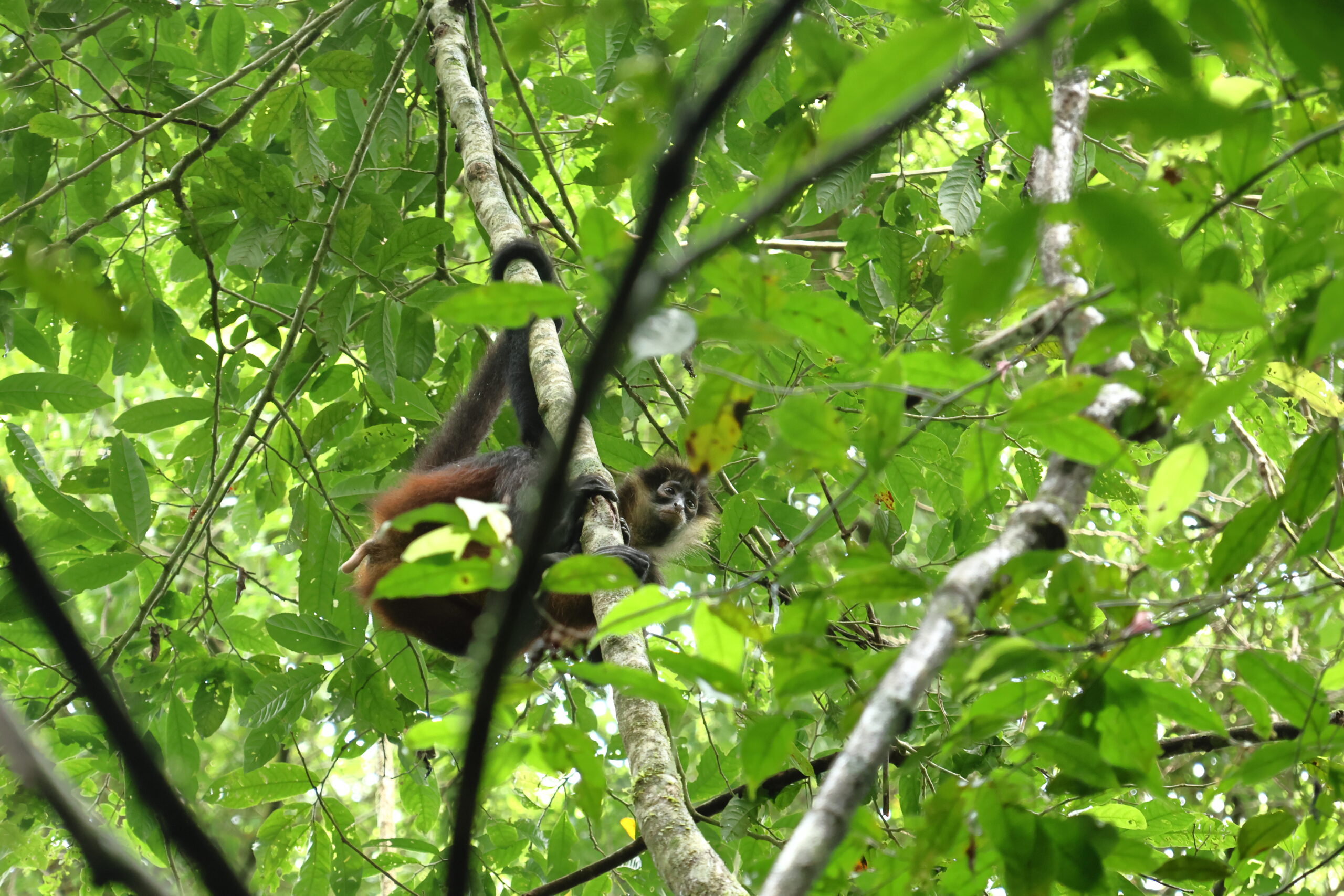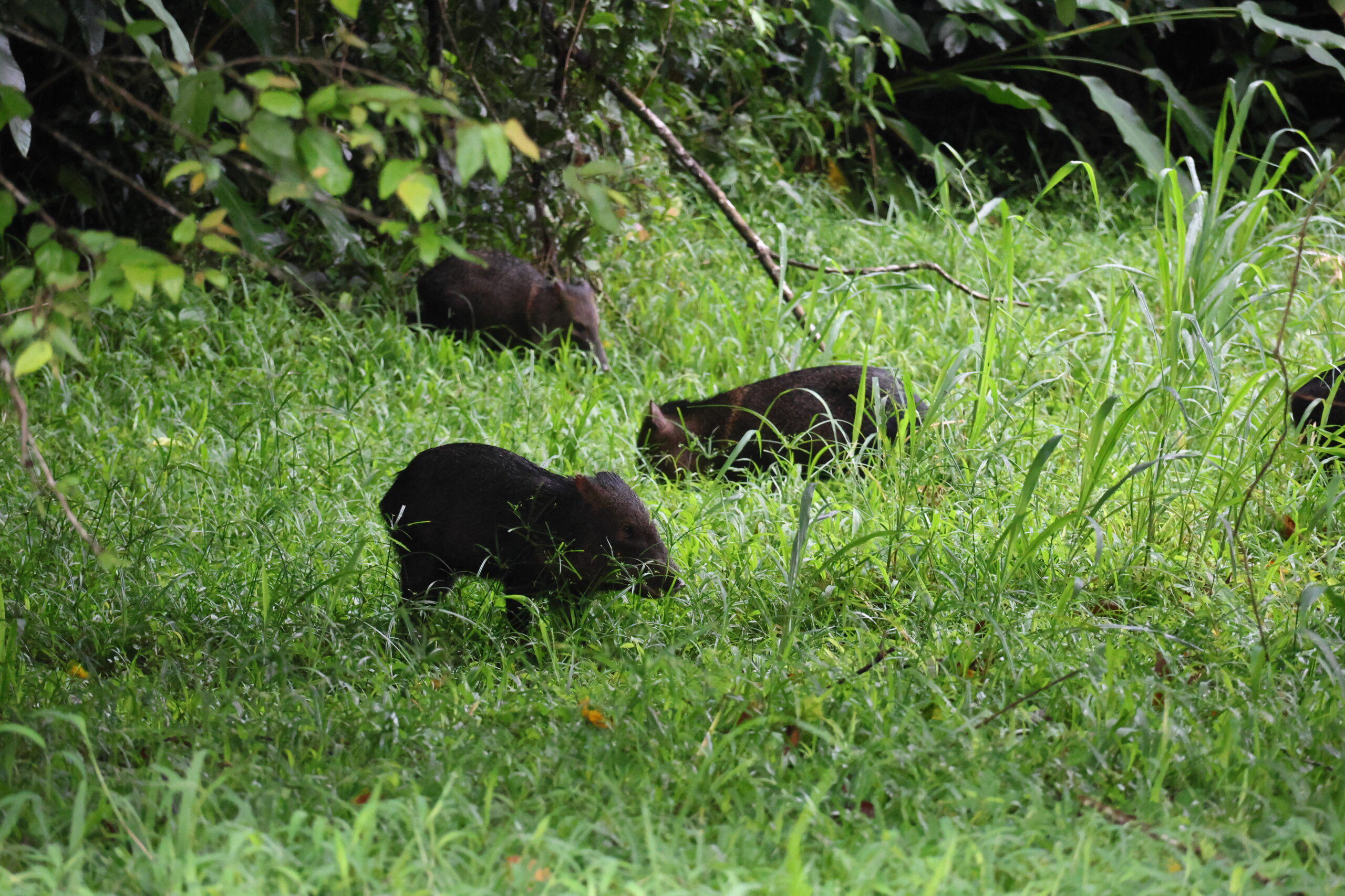 Schon auf unseren ersten Wanderungen fühlte es sich an, als würden wir durch ein lebendiges Naturlexikon laufen. Jeder Schritt brachte neue Geräusche, Bewegungen und Entdeckungen. Nasenbären durchstöberten den Waldboden nach Futter, während hoch oben Klammeraffen mit einer fast schon artistischen Leichtigkeit von Ast zu Ast schwangen. Totenkopfäffchen huschten blitzschnell durch die Zweige und warfen uns neugierige Blicke zu, Brüllaffen sorgten im Hintergrund für die passende Urwald-Atmosphäre mit ihrem tiefen, grollenden Ruf. Wir entdeckten Ameisenbären, die seelenruhig nach Termiten suchten, sahen ein Krokodil im Fluss liegen, Agutis und Pekaris beim Grasen, und als Krönung: einen Tapir mit Baby – ein Anblick, der uns einfach sprachlos machte. Über uns segelte ein farbenprächtiger Tukan, während ein Curassow gemütlich am Wegrand entlang spazierte. Dazu kamen unzählige andere Vögel und Echsen, die diesen Ort zu einem wahren Paradies machen.