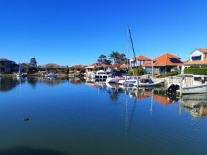 Am nächsten Tag erkundeten wir vormittags Paynesville selbst. Der kleine Ort ist ein beliebter Ausgangspunkt für Bootstouren auf den Gippsland Lakes, wirkt aber gleichzeitig herrlich entspannt und bodenständig. Wir spazierten entlang der Promenade, beobachteten die Boote im Wasser und genossen einfach die ruhige Atmosphäre. Am Nachmittag zog es uns natürlich nochmal zurück nach Raymond Island – diesmal mit mehr Zeit und ohne Eile. Wir liefen eine größere Runde durch die Wohngebiete und Naturwege der Insel und waren inzwischen echte Koala-Profis. Am Ende des Tages standen unglaubliche 23 Koalas auf unserer Liste – plus eine kleine Gruppe Kängurus, die einfach entspannt in einem Vorgarten herumstanden, als wäre das das Normalste der Welt.