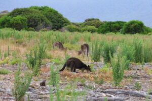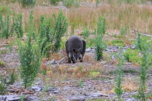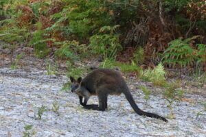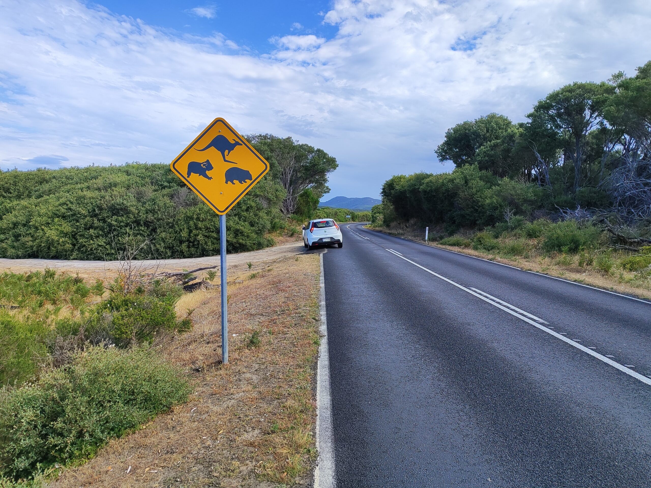 Unser erster Stopp war der sogenannte Wildlife Walk in der Nähe von Tidal River. Die Hoffnung: Wombats. Die Realität: wahrscheinlich zu früh am Nachmittag. Wombats sind vor allem in der Dämmerung und nachts aktiv, tagsüber schlafen sie meist in ihren ausgedehnten Erdhöhlen. Wir entdeckten ein paar Kängurus und auch einzelne Wallabys – süß, keine Frage, aber nach den letzten Wochen in Australien sind Kängurus für uns fast schon „alte Bekannte“.