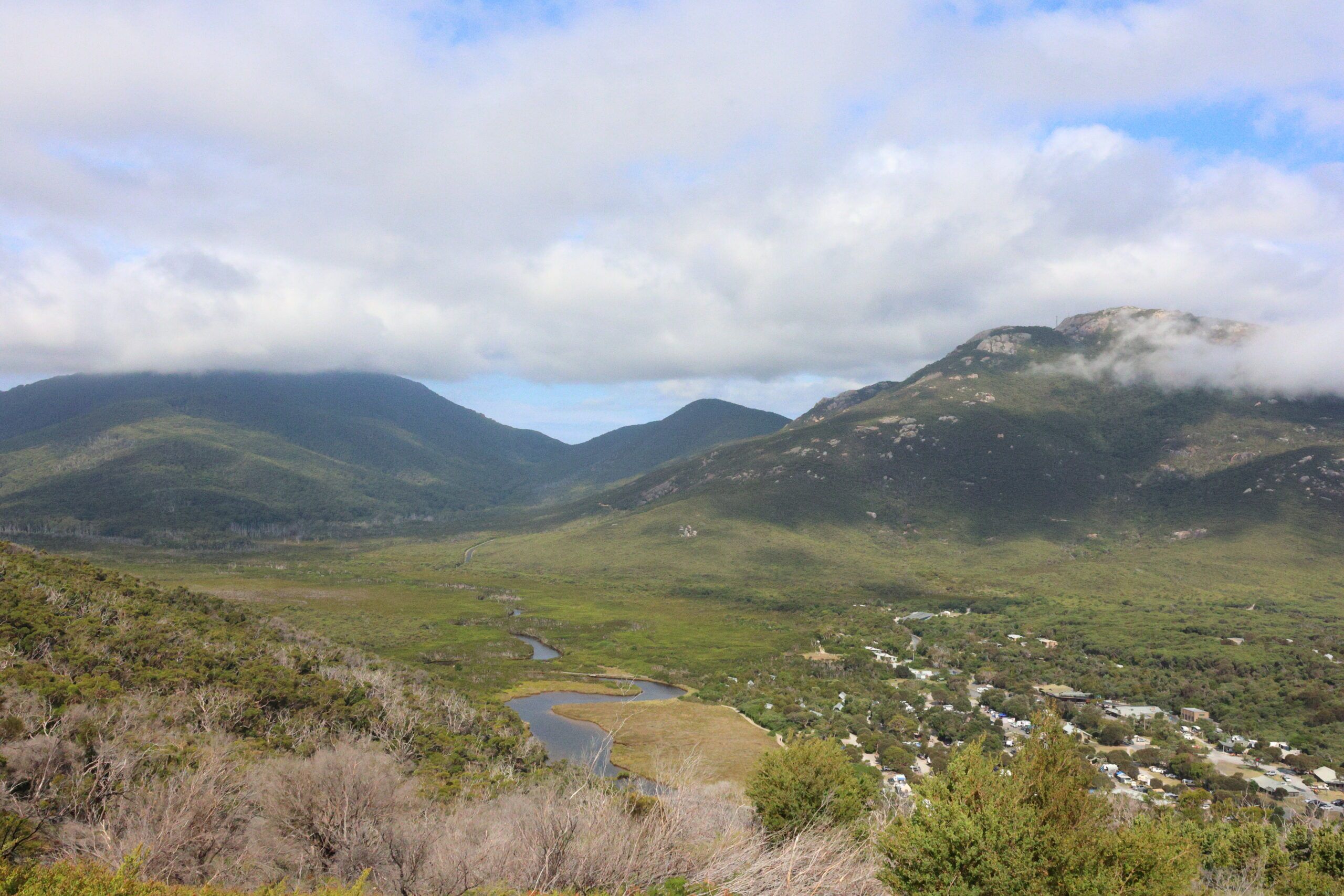 Am nächsten Tag starteten wir einen neuen Versuch – diesmal mit besserem Timing. Unser Ausgangspunkt war der große Campingplatz am Tidal River, dem Herzen des Parks. Von dort liefen wir den Tidal Overlook Circuit. Der Weg führte entlang des Tidal River, dann hinauf Richtung Pillar Point Lookout, durch dichten Wald und schließlich wieder zurück ins Tal. Von oben hatten wir einen großartigen Blick über Norman Beach und das Meer – diese Mischung aus Fluss, Bergen und Ozean ist einfach beeindruckend.