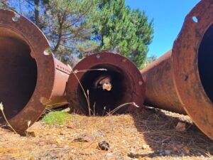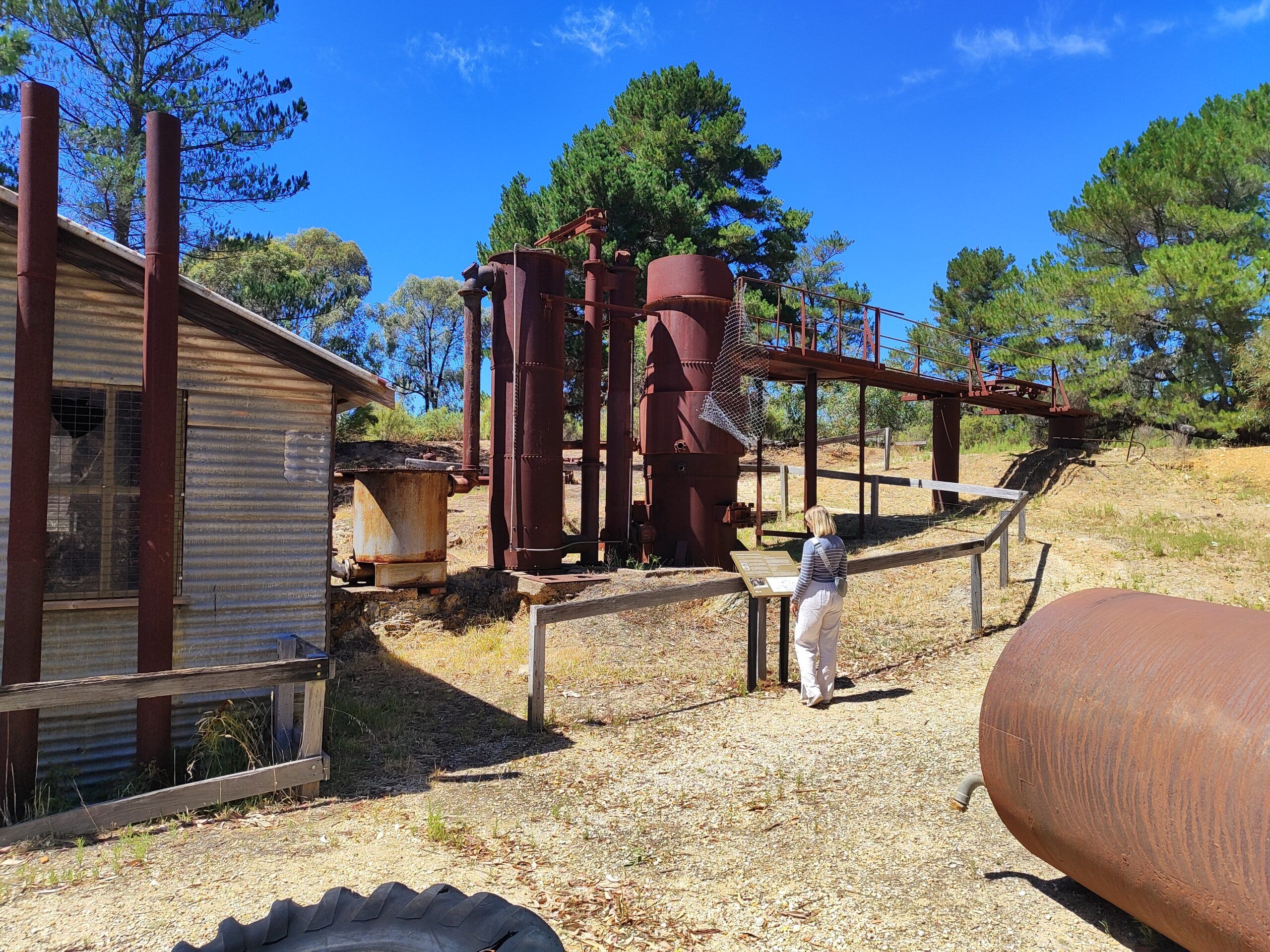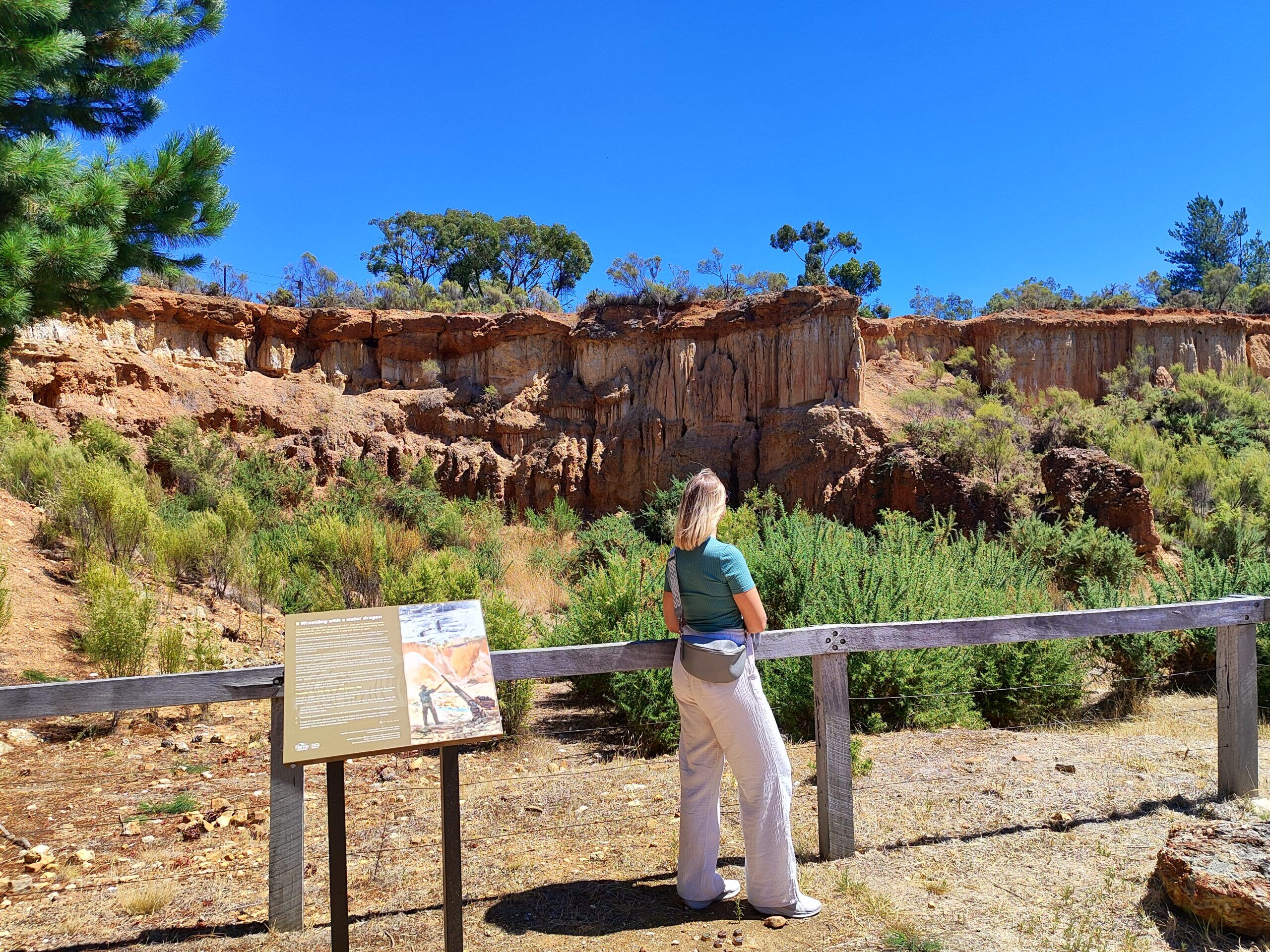 Danach ging es weiter zu einem ehemaligen Goldminen-Gelände bei Castlemaine, heute ein Freilichtmuseum. Auf einem Rundweg wird die Geschichte des Goldabbaus anhand einer Familie erzählt – fast wie ein Roman in mehreren Kapiteln. Man läuft zwischen alten Schächten, Pumpenhäusern, Quarzadern im Gestein und Überresten von Wasserkanälen entlang, mit denen einst ganze Hügel ausgewaschen wurden. Wir waren allein dort und konnten alles in unserem eigenen Tempo erkunden. Genau unser Ding.
