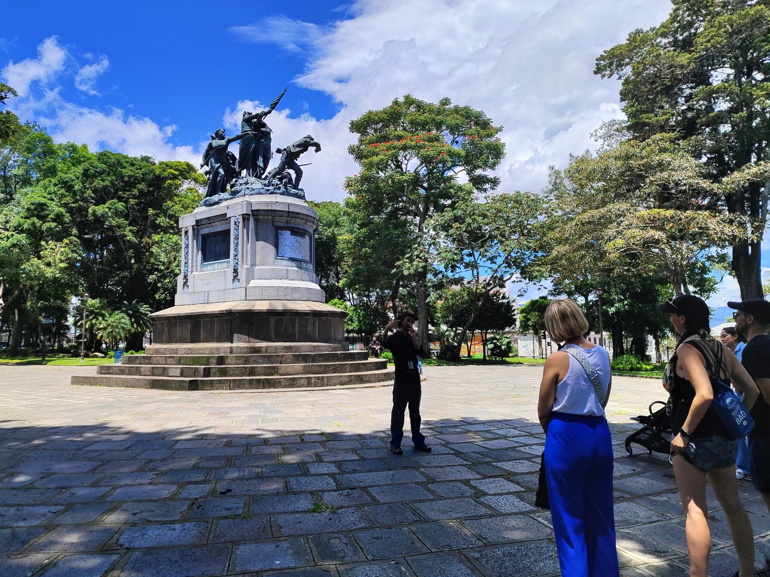 Nach ungefähr 12 Stunden Schlafen sind wir morgens um 6 Uhr fit! Deshalb nutzen wir den Morgen um nach dem Frühstück an einer Free Walking Tour teilzunehmen. Unser Guide Braulio hat fast schon überall in Costa Rica gewohnt und gearbeitet und liebt es offensichtlich über die Geschichte und Kultur des Landes zu erzählen. Der Rundgang war eher kurz, es gibt in San Jose aber auch nicht so viel zu sehen. Deshalb haben wir seinen Ausführungen gelauscht.