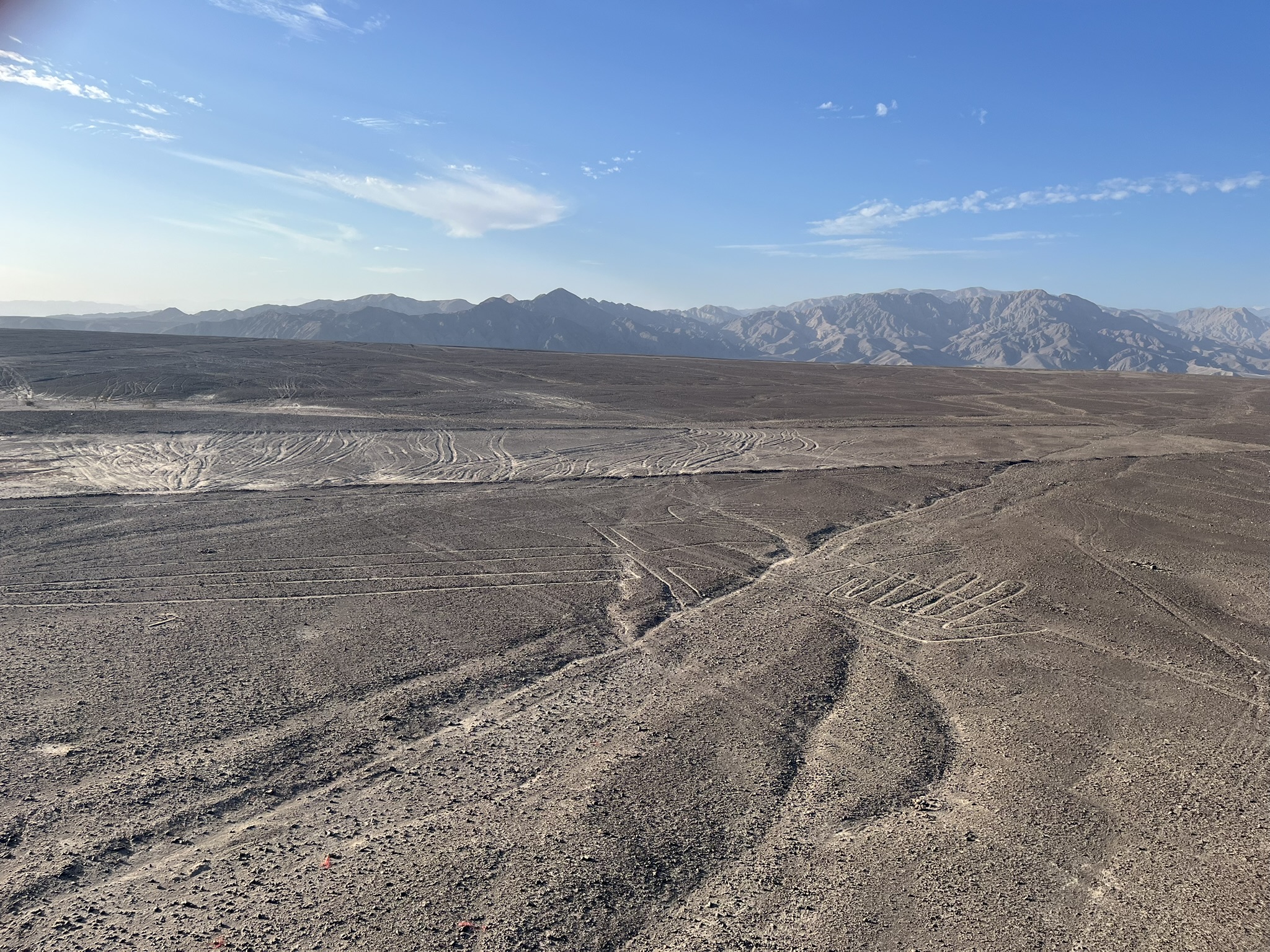 Vom Turm aus sind 3 große Figuren und einige der kerzengeraden Linien erkennbar: die Eidechse, die Hände und der Baum. Es ist schon beeindruckend, dass sich mitten im Nirgendwo so akkurate Figuren und Linien befinden. Über die Entstehung wird ja immer noch gestritten, wir persönlich glauben zumindest nicht an die Alien-Hypothese 😁. Entgegen aller Aussagen ist der Rückweg von den Linien in die Stadt Nazca leider nicht so einfach wie gedacht. Eigentlich sollte alle 20 Minuten ein Bus zurück in die Stadt vorbeikommen- tut er aber leider nicht. Nach einer Stunde warten und nachdem die Sonne so langsam untergeht und alle Mitarbeiter am Aussichtsturm zusammenpacken, wird mir langsam mulmig zumute. Ich möchte wirklich nicht alleine im Dunkeln an der Straße im Nirgendwo stehen. Auch Trampen klappt leider nicht so wirklich. Es hupen zwar alle zum Grüßen, aber mitnehmen will uns keiner.