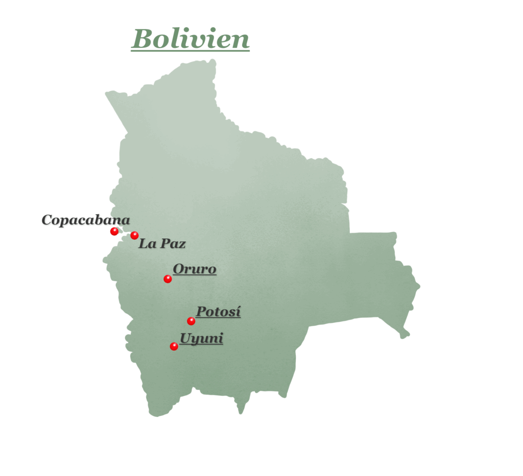 Im heutigen Blogartikel fasse ich mehrere Etappen unserer Reise zusammen – und das hat zwei gute Gründe. Zum einen sind wir in Bolivien ziemlich viel herumgekommen, zum anderen muss ich ehrlich sagen: das Land hat uns einfach nicht so richtig abgeholt.
