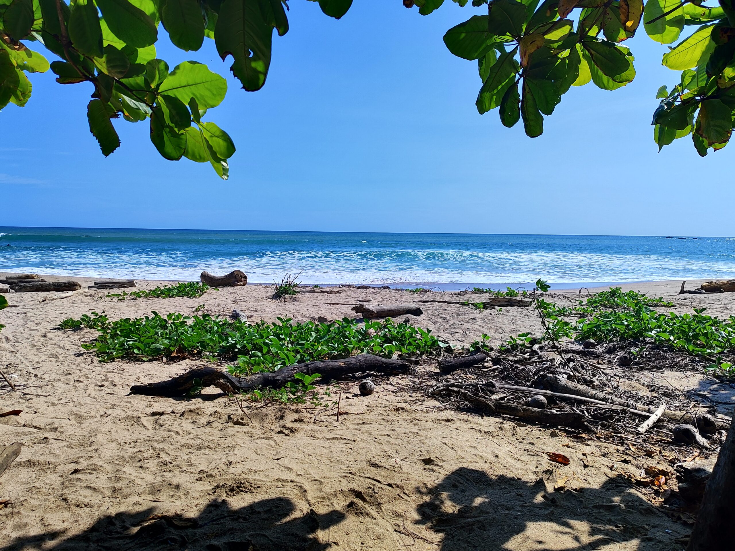 Aber damit nicht genug: Wir sind weiter spaziert über einen kleinen Trampelpfad durch den Busch bis zum kilometerlangen Playa Guiones. Dort haben wir eine kurze Pause eingelegt, einfach nur aufs Meer geschaut und die Ruhe genossen. Danach ging’s weiter durch den Ort und schließlich über einen schmalen Weg durch den „Strandwald“ zurück zur Unterkunft. Das war zwar alles nicht direkt eine Wanderung, aber für unsere müden Busfahrerbeine völlig ausreichend.