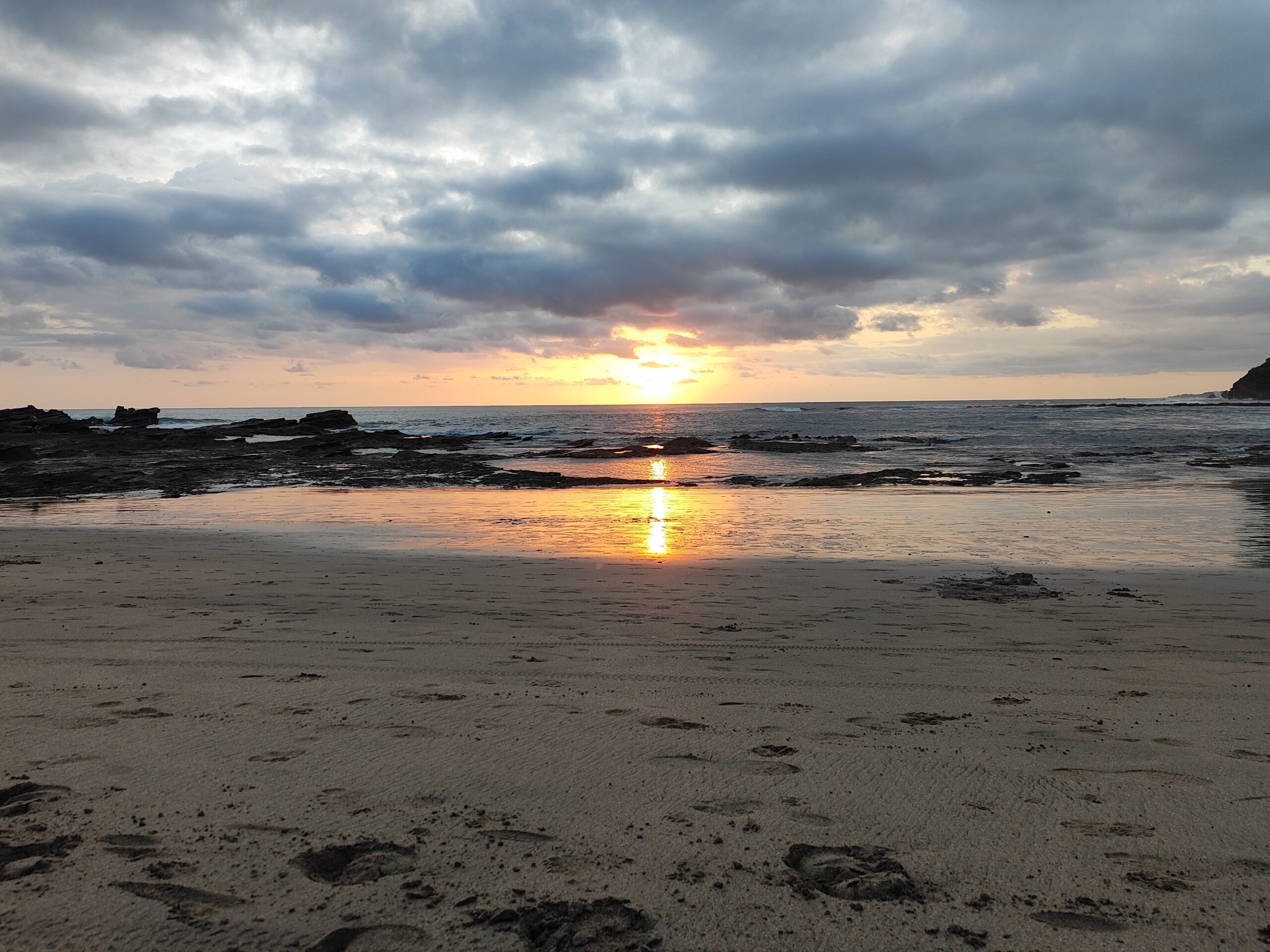 Danach mussten wir erstmal ein bisschen Bewegung reinbringen. Die lange Fahrt steckte uns noch in den Knochen. Also auf zur Erkundungstour! Erst durch den Ort geschlendert, dann an die wunderschöne Bucht von Playa Pelada. Das Wasser war hier viel ruhiger als in Santa Teresa – man konnte sogar richtig schwimmen, ohne sofort von einer Welle umgeworfen zu werden. Ein Traum!