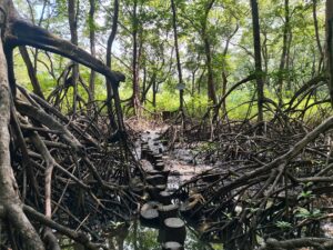 An unserem letzten Tag in Playa Pelada wollten wir dann endlich mal eine richtige Wanderung machen, ein bisschen Vorbereitung auf Peru quasi. Carina hatte ein kleines Schutzgebiet ausfindig gemacht, das von einem Hotel aus begehbar war. Also rein in die Wanderschuhe und ab in den Mangrovenwald!