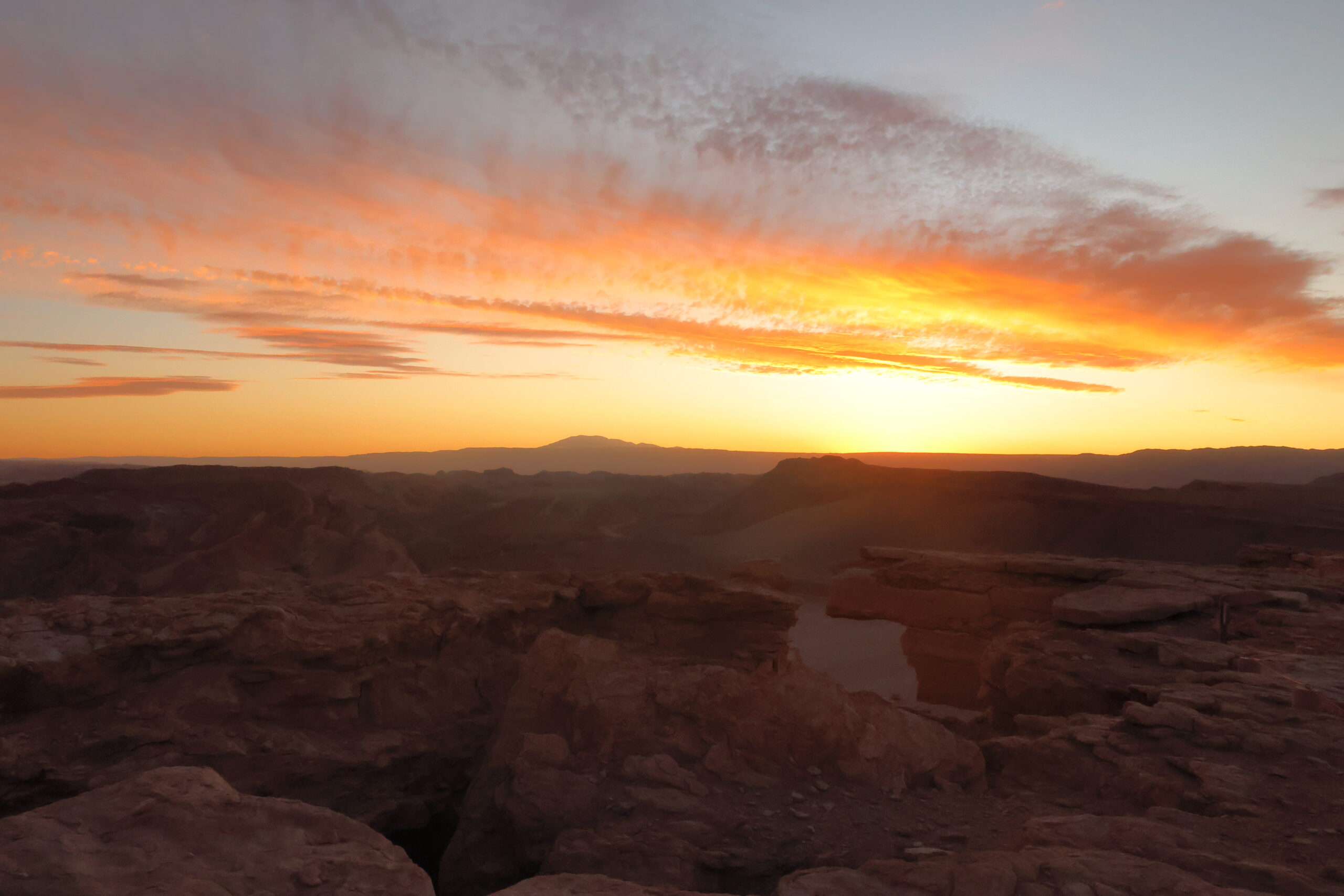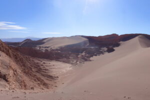 Am Ende unserer 3-Tages Tour durch die Salzwüste von Uyuni und die Andenüberquerung sind wir schließlich in der Oasenstadt San Pedro de Atacama gelandet. Hier erwartete uns eine kleine Stadt mit grünen Bäumen (endlich mal nicht alles vertrocknet) am Rande der kargen Wüstenlandschaft der Atacama Wüste. In der Ferne sind noch immer die Berge und erloschenen Vulkane der Anden zu sehen. Wir befinden uns „nur noch“ auf 2400 Höhenmetern, es sind angenehme 25°C und es fühlt sich wunderbar an. Allgemein fühlen wir uns hier deutlich wohler und freuen uns endlich mal wieder kurze Hose und T-Shirt tragen zu können.